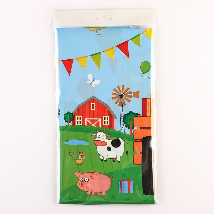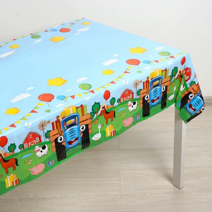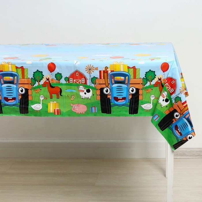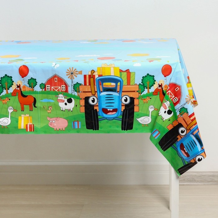 Скатерть одноразовая праздничная 120х180 см, 35 мкр, Синий трактор