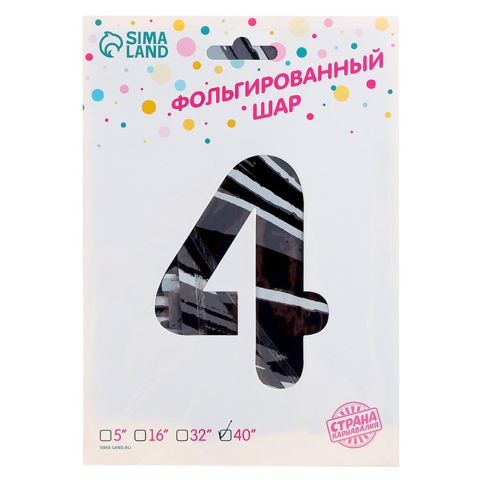 Шар фольгированный 40" «Цифра 4», чёрный мрамор
