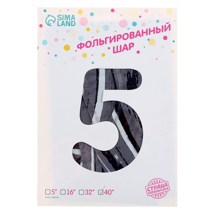 Шар фольгированный 40" «Цифра 5», чёрный мрамор
