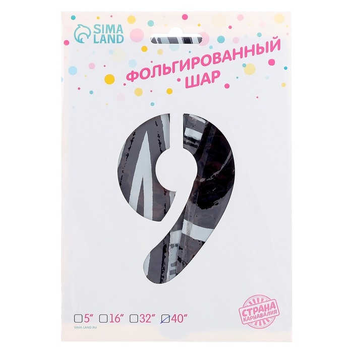 Шар фольгированный 40" «Цифра 9», чёрный мрамор