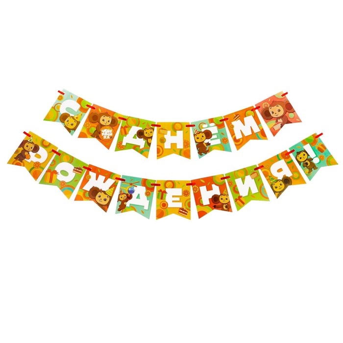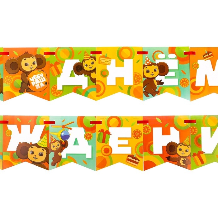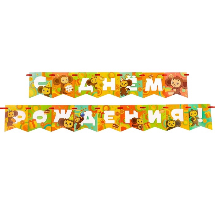 Гирлянда на ленте "С днем рождения", длина 215 см, Чебурашка
