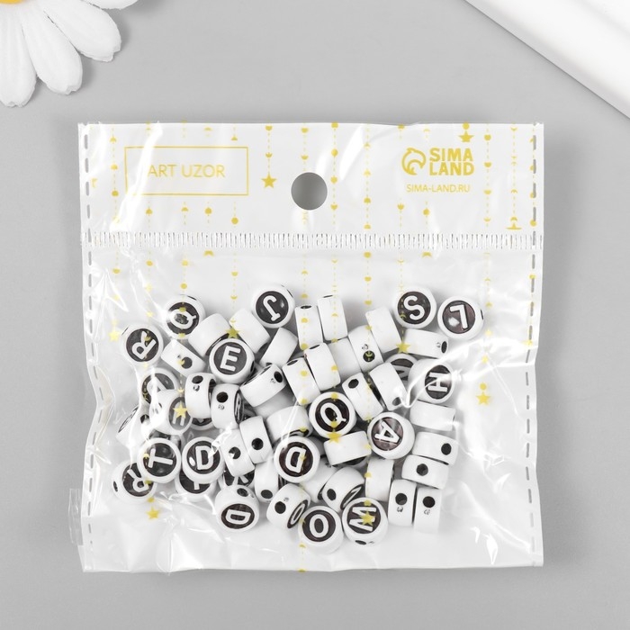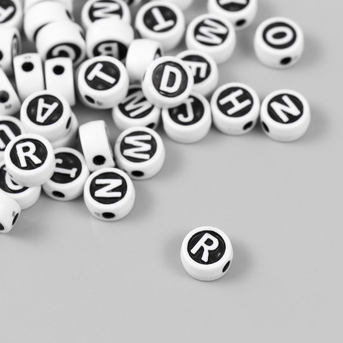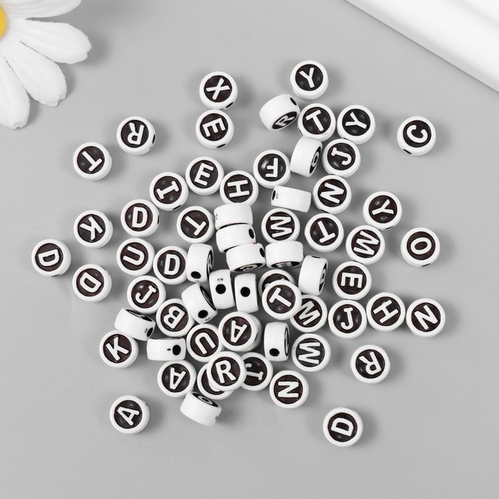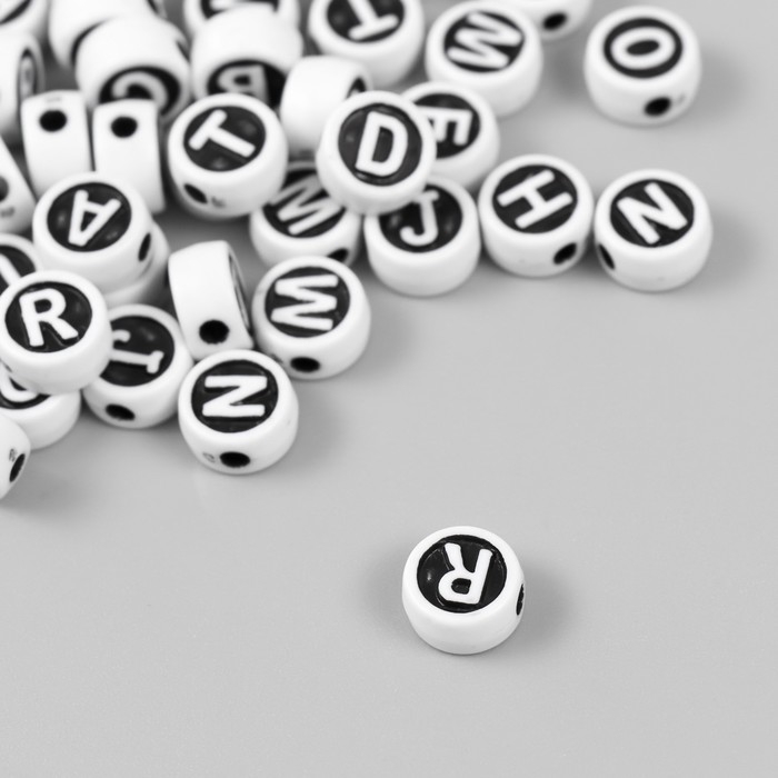 Бусины для творчества пластик "Англ.буквы в круге" белые на чёрном набор 20 гр 0,6х1х1 см