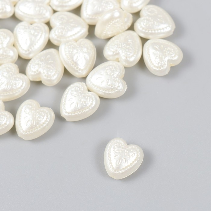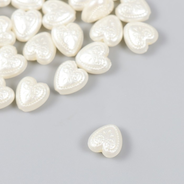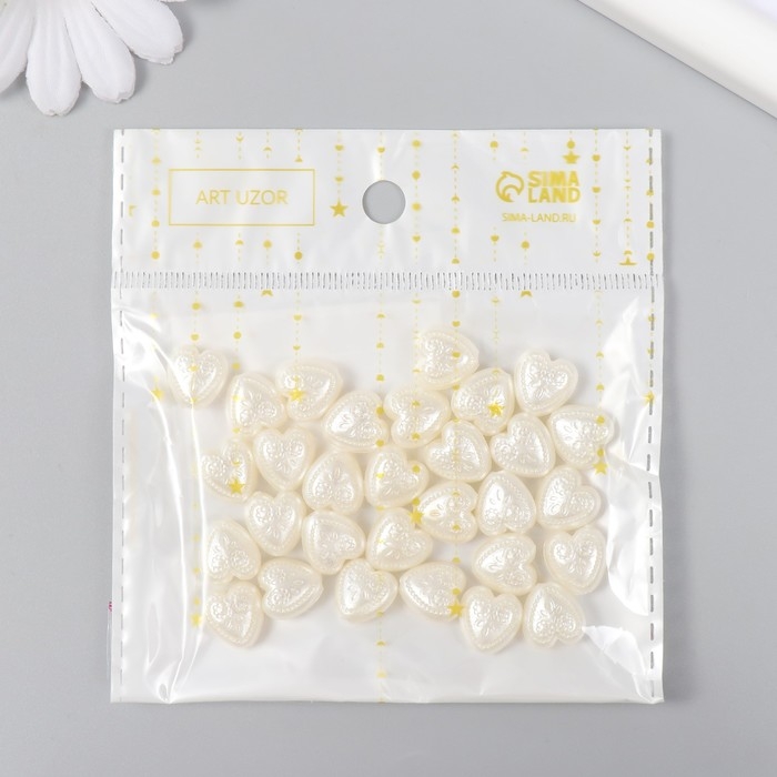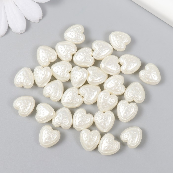 Бусины для творчества пластик "Жемчужные сердца с узорами" набор 30 шт 0,5х1,1х1,2 см