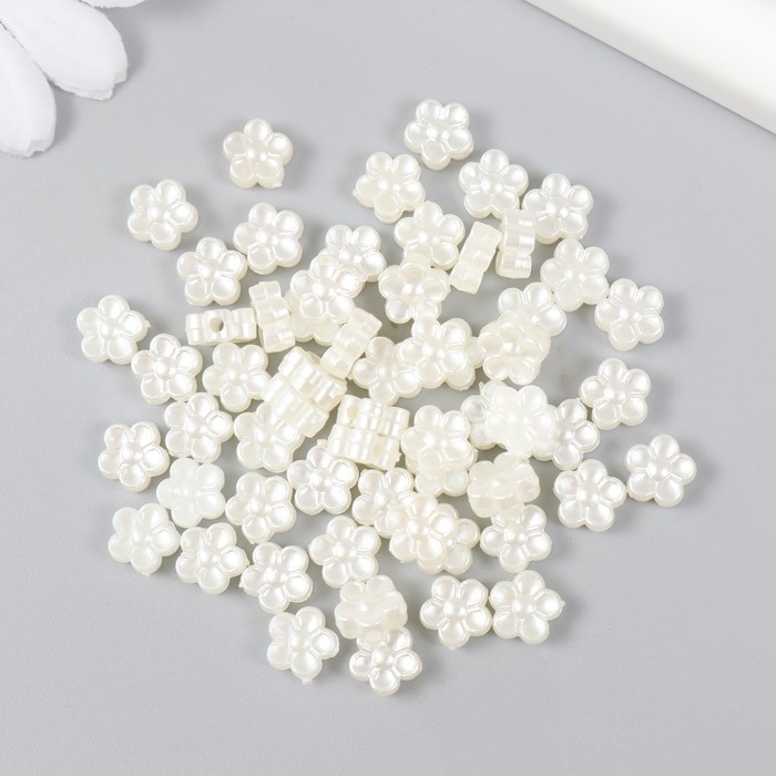 Бусины для творчества пластик "Жемчужные микро цветочки" набор 60 шт 0,5х0,9х0,9 см