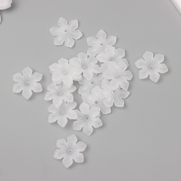 Бусины для творчества пластик "Шестилистный цветок белый матовый" набор 40 шт 2,1х2,1 см
