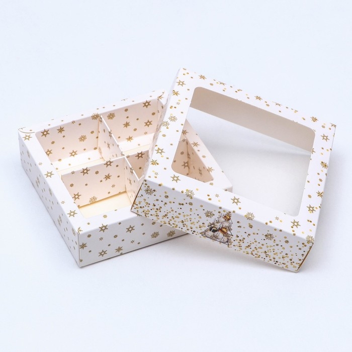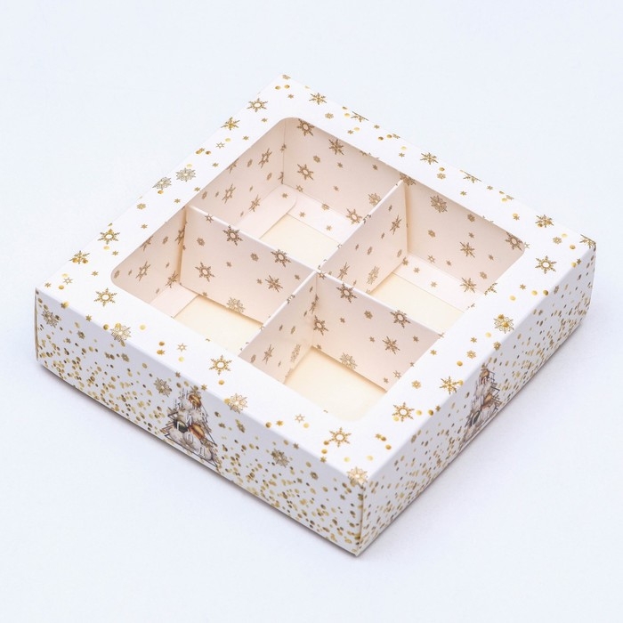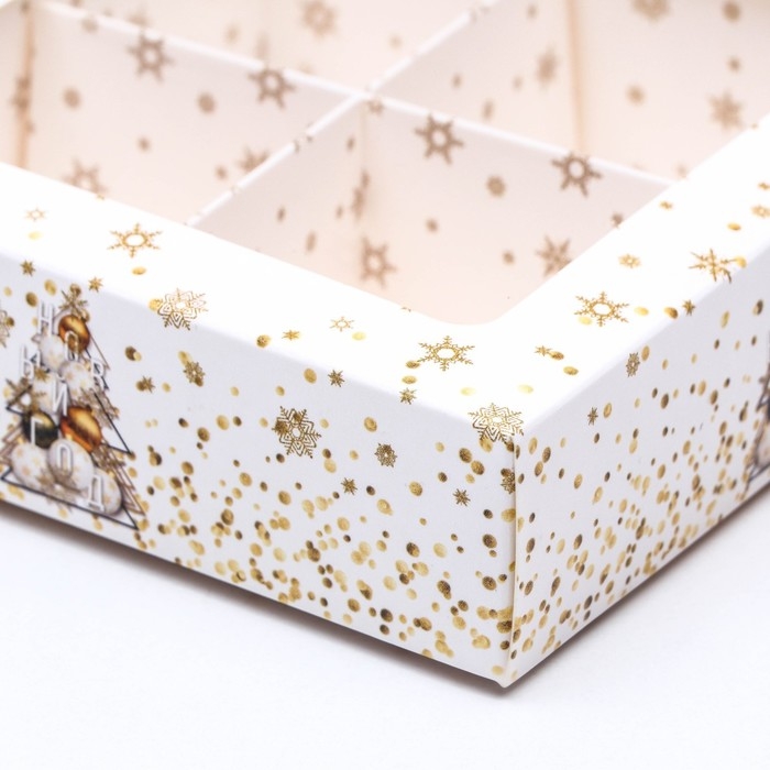 Коробка под 9 конфет с ячейками «Загадай желание» 14,5 х 14,5 х 3,5 см, Новый год