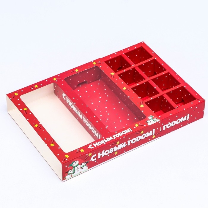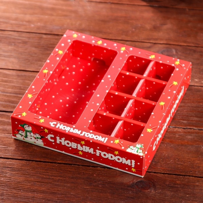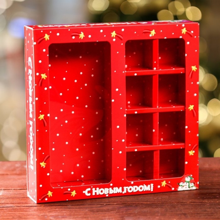 Коробка под 8 конфет + шоколад «с Новым Годом», 17.7×17.85×3.85 см