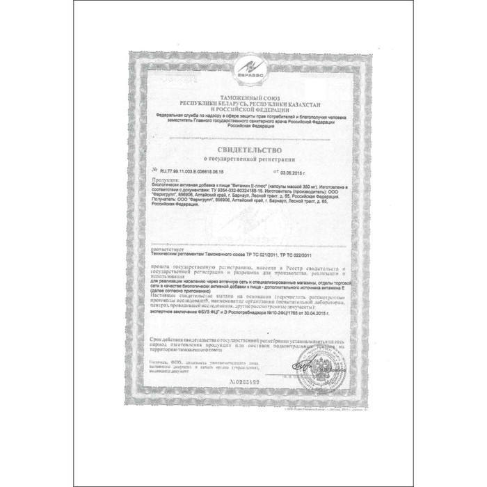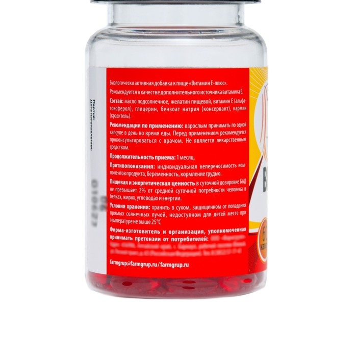 Состав: Масло подсолнечное, желатин пищевой, витамин E (альфа-токоферол), глицерин, бензоат натрия (консервант), кармина экстракт (краситель).