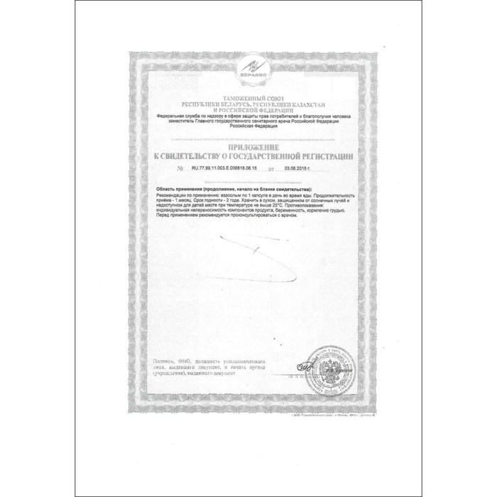 Взрослым по 1 капсуле в день во время еды. Продолжительность приема - 1 месяц.