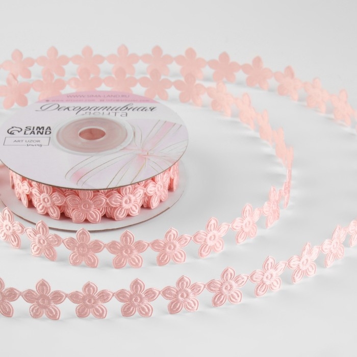 Лента фигурная «Цветочек», 18 мм, 9 ± 0,5 м, цвет нежно-розовый