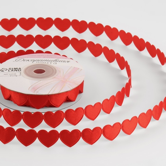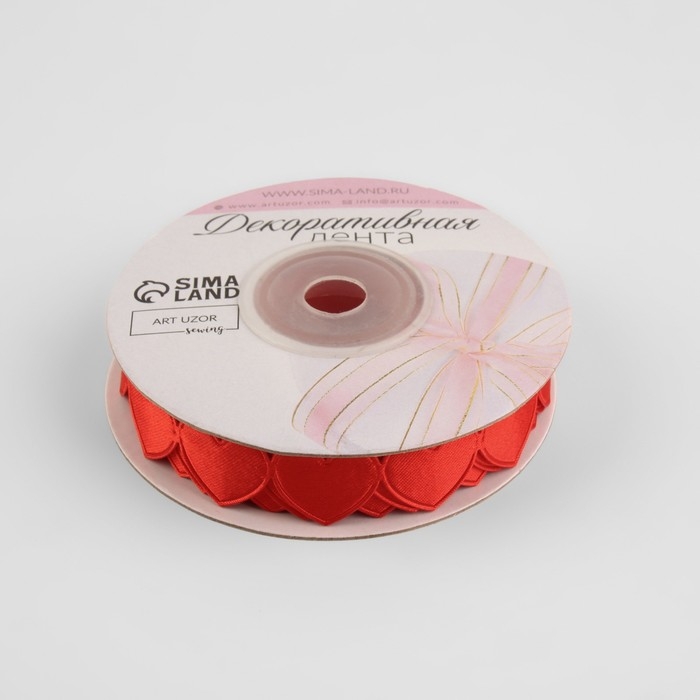 Лента фигурная «Сердечки», 16 мм, 9 ± 0,5 м, цвет красный
