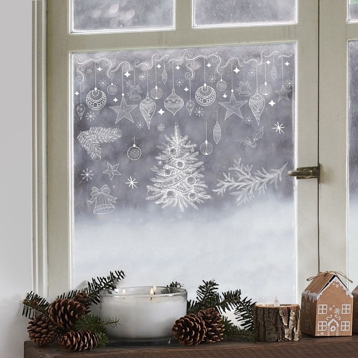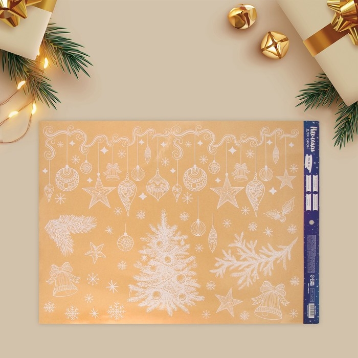 Наклейки новогодние на окна «Яркий праздник», многоразовые, 50 х 70 см, Новый год