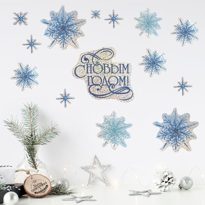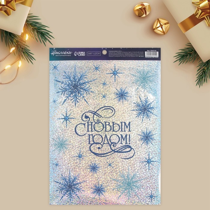 Наклейки новогодние, интерьерные «С Новым годом», голография 21 х 29.7 см, Новый год