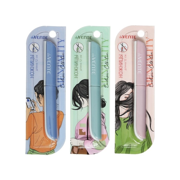 Ножницы канцелярские deVENTE. Mentality 12 см, складные (дорожные) лезвия из нержавеющей стали, пластиковые кольца, защитный футляр, цвета ассорти, в картонном блистере.