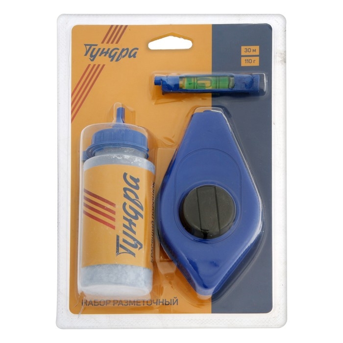 Набор разметочный ТУНДРА, шнур малярный 30 м, красящий порошок 110 г, синий