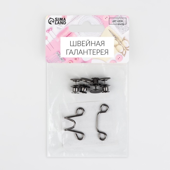 Крючки пришивные, металлические, для верхней одежды, 5 × 1,5 см, 6 шт, цвет чёрный