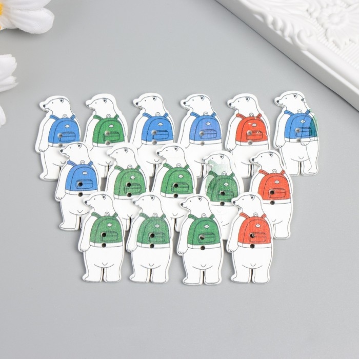 Пуговицы дерево для творчества 2 прокола "Медведь с рюкзаком" набор 15 шт 1,6х3,5 см