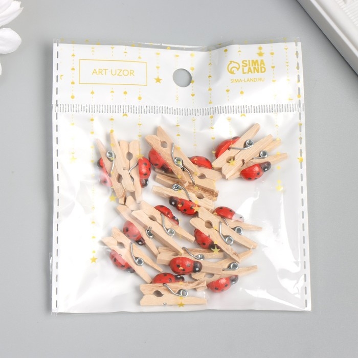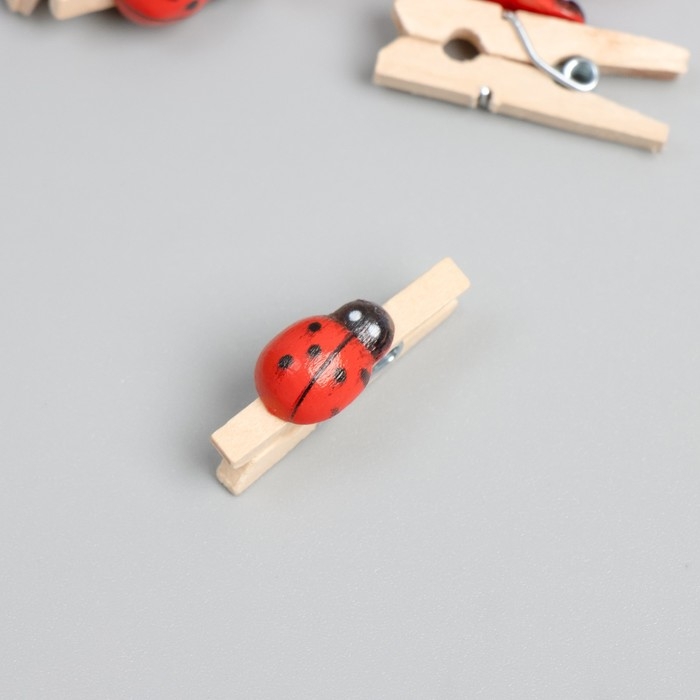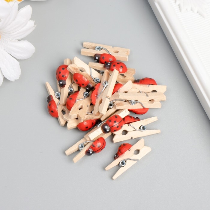 Декор для творчества дерево "Прищепка с божьей коровкой" набор 15 шт 1,5х1 см
