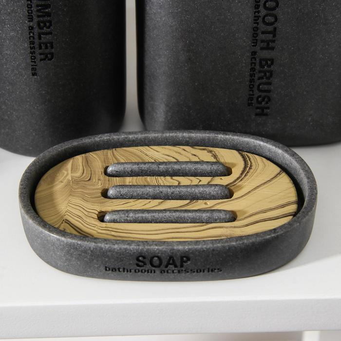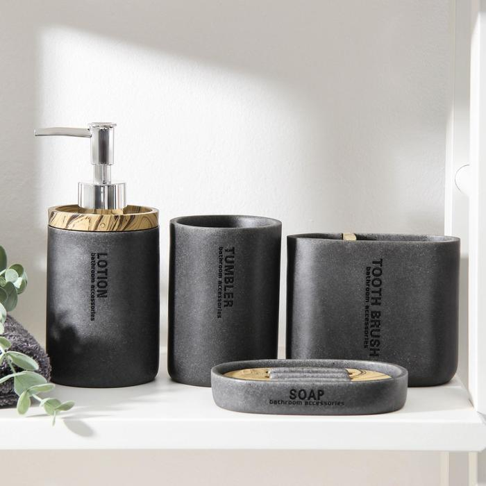 Набор аксессуаров для ванной комнаты «Стиль», 4 предмета (дозатор, мыльница, 2 стакана), цвет серый