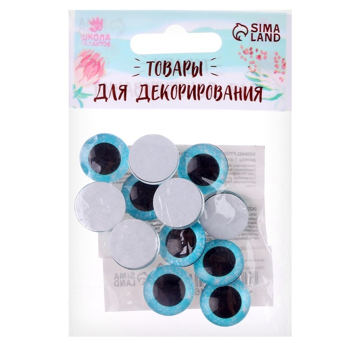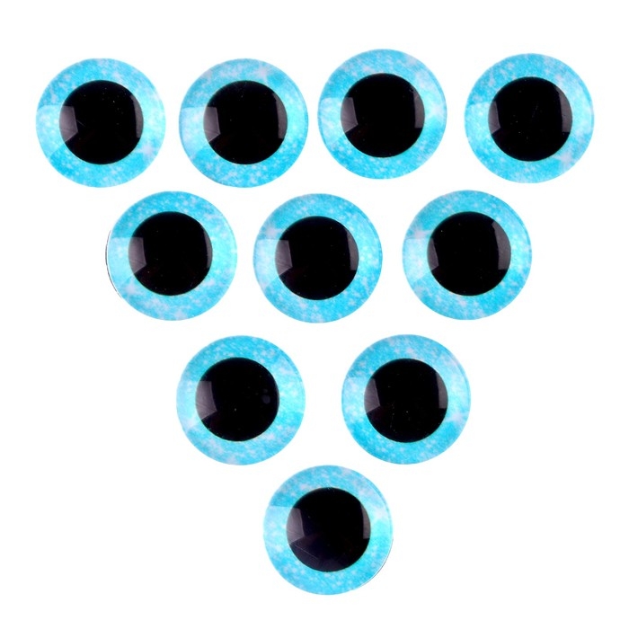 Глаза на клеевой основе, набор 10 шт., размер 1 шт. — 18 мм, цвет голубой с блёстками