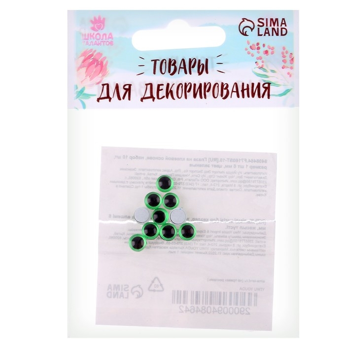 Глаза на клеевой основе, набор 10 шт., размер 1 шт. — 6 мм, цвет зелёный