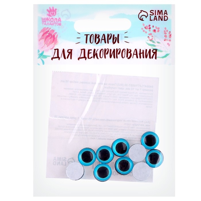 Глаза на клеевой основе, набор 10 шт., размер 1 шт. — 10 мм, цвет голубой