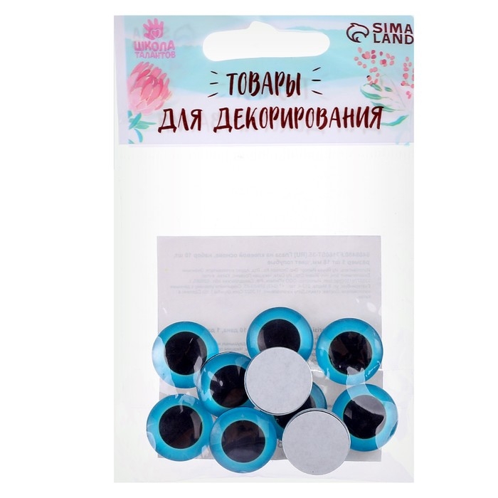 Глаза на клеевой основе, набор 10 шт., размер 1 шт. — 18 мм, цвет голубой