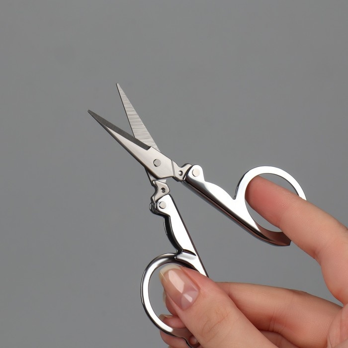 Ножницы маникюрные, прямые, складные, 9 см, цвет серебристый