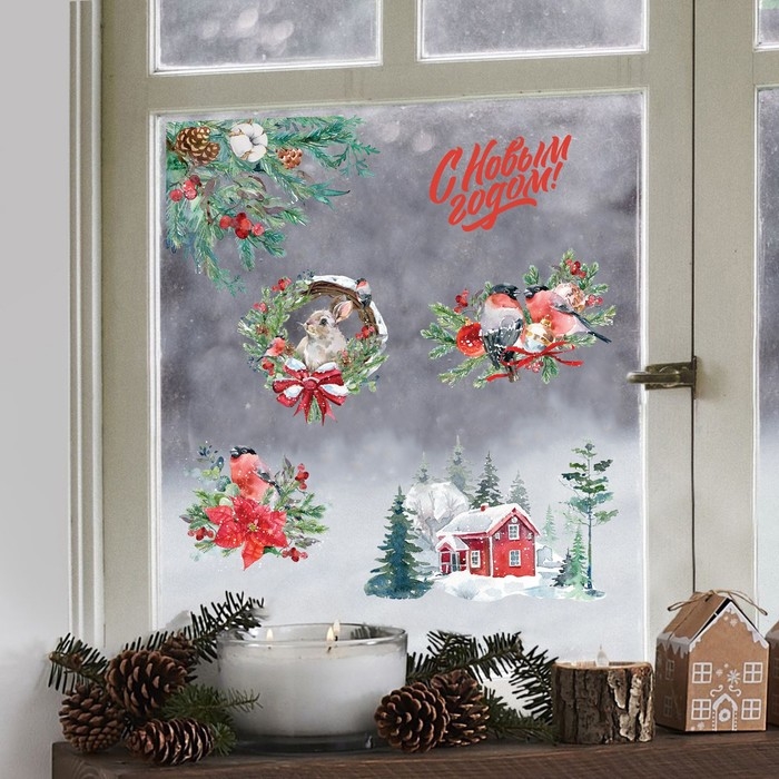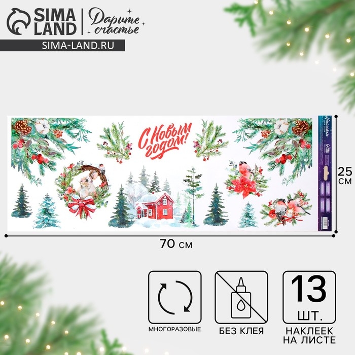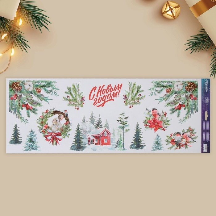 Виниловые наклейки на окна «Новогодняя деревушка», многоразовые, 70 х 25 см, Новый год