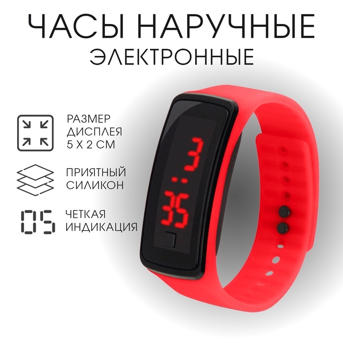Часы наручные, электронные детские "Блик", ремешок силикон, циферблат 5 х 2 см, красные