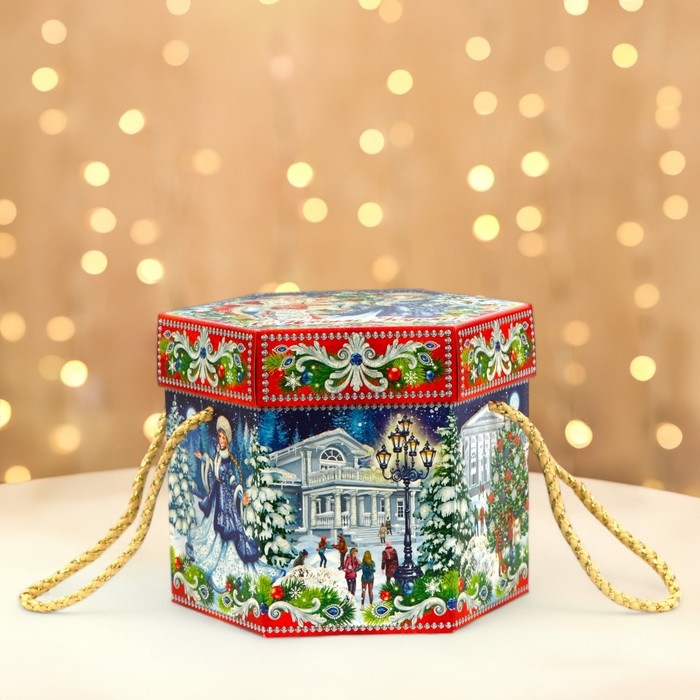 Новый год. Подарочная коробка "На Катке" 18 x 18 x 14 см.