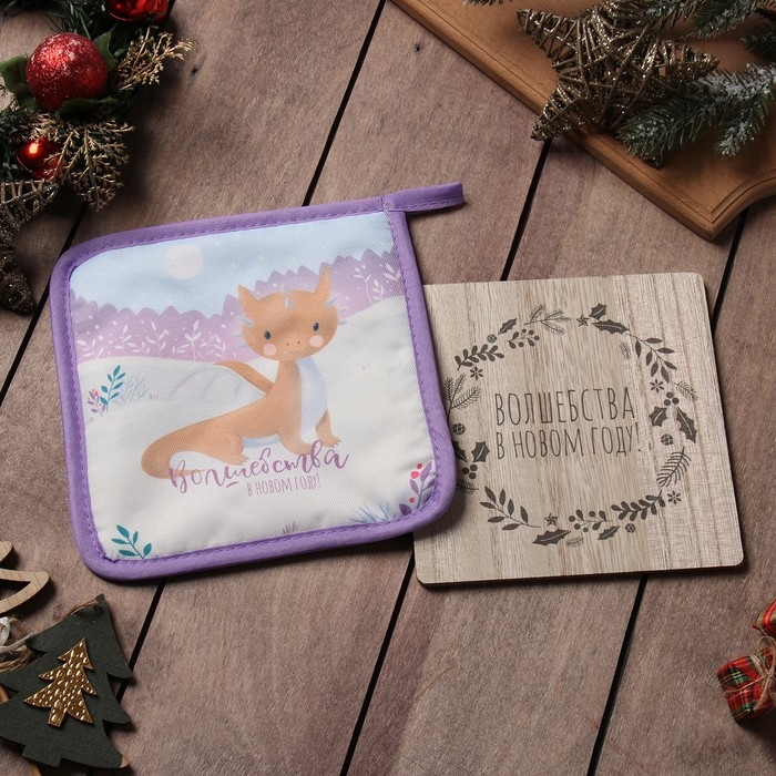 Новый год. Набор кухонный Доляна Волшебства: подставка 15*15 см, прихватка 17*17см