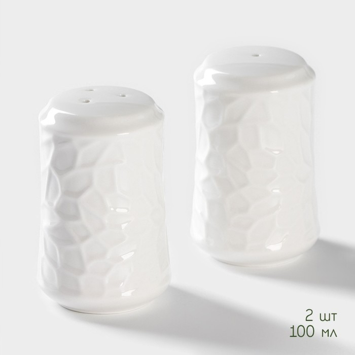 Набор фарфоровый для специй на бамбуковой подставке BellaTenero «Шарики», 2 предмета: солонка 100 мл, перечница 100 мл, цвет белый