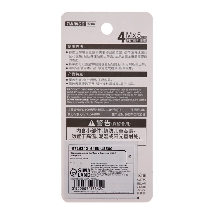 Корректор-лента 4м х 5мм "Конфетка", в блистере, МИКС