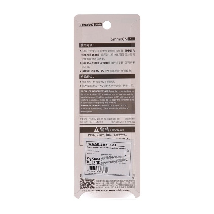 Корректор-лента, 9 м х 5 мм, раздвижной, блистер, европодвес