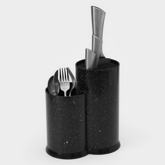 Подставка для ножей с наполнителем Доляна «Кракле», 14×9 см, цвет чёрный