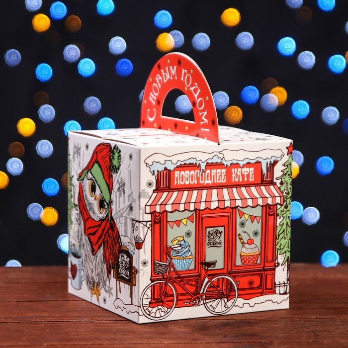 Подарочная коробка "Новогоднее кафе", 14 х 14 х 14 см