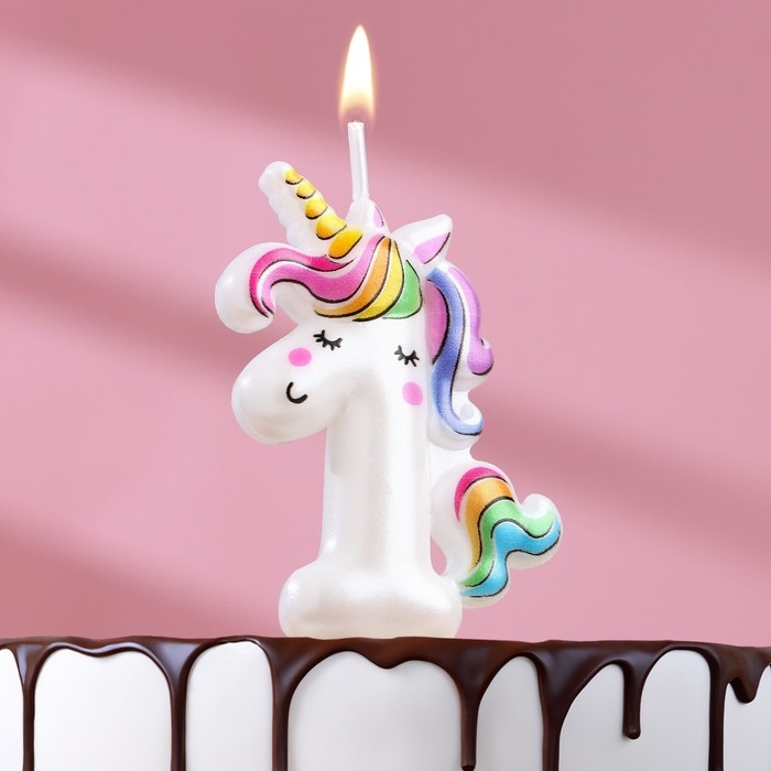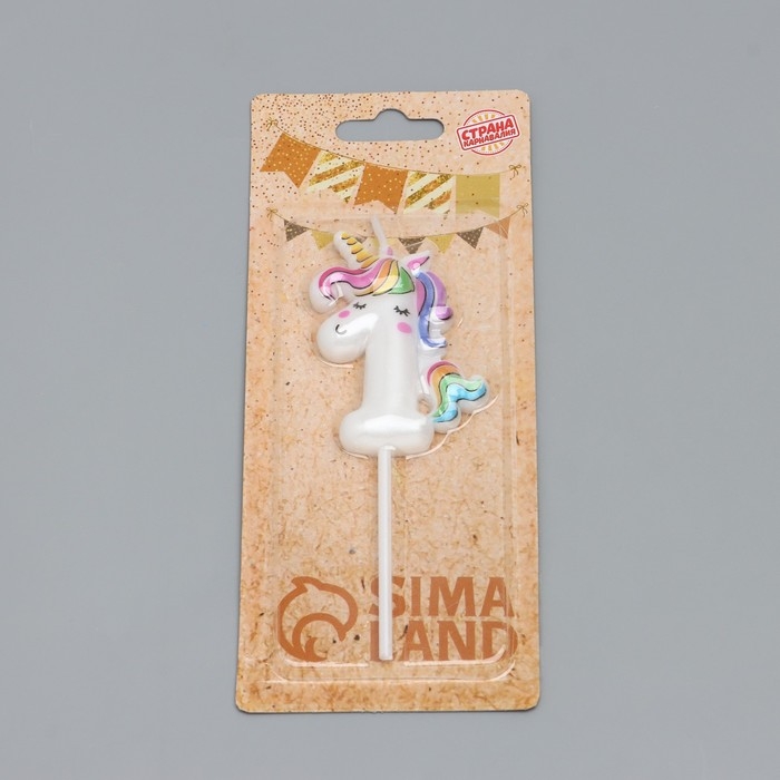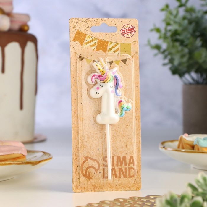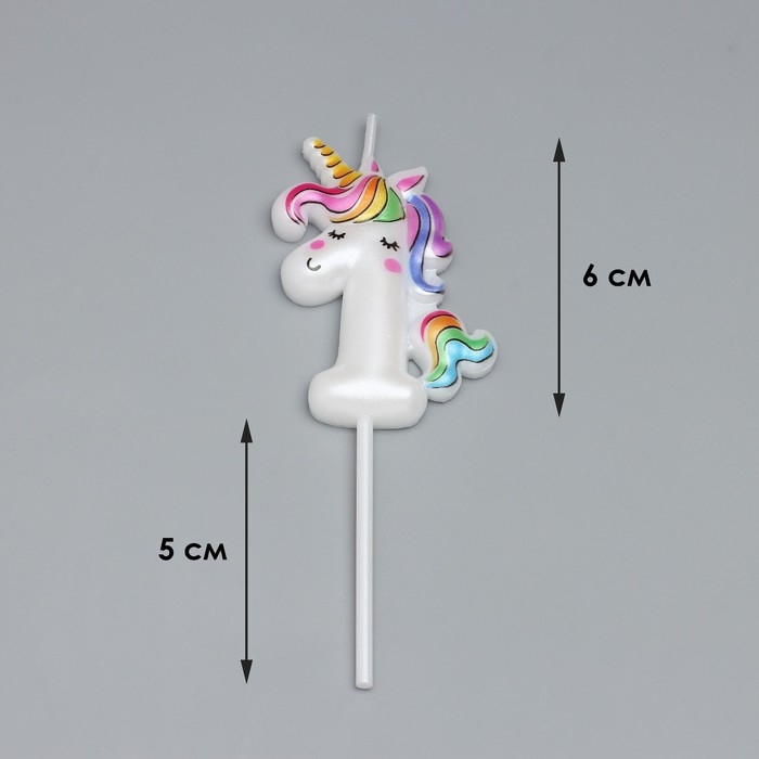 Свеча в торт "Единорог", цифра "1", 6 см