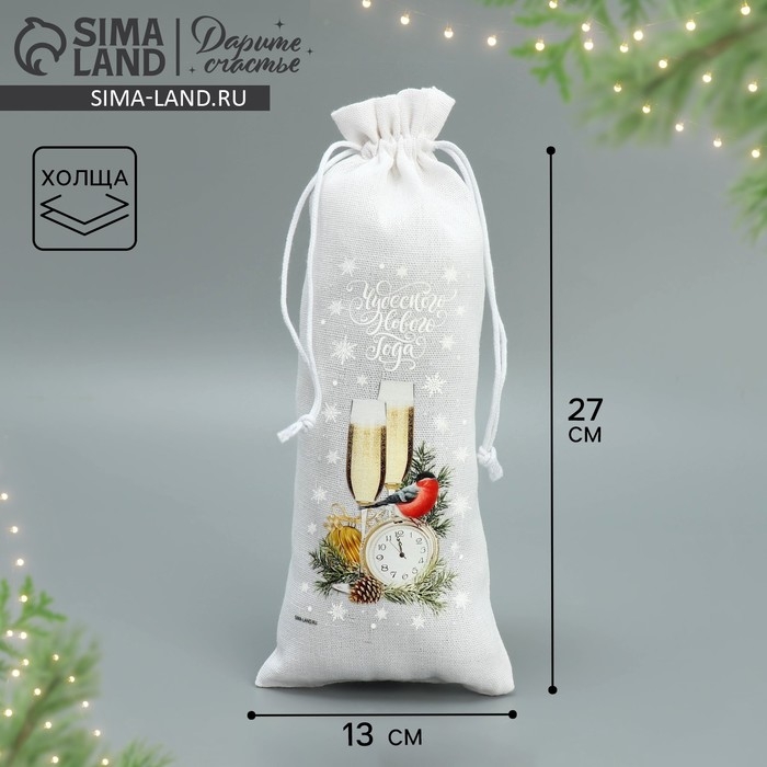 Мешок с термонаклейкой под бутылку «Шампанское», 13 х 31 см +/- 1.5 см, Новый год