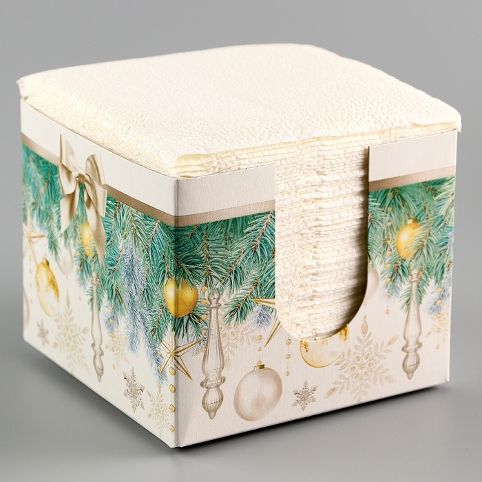 Новогодние салфетки бумажные в коробке «Ёлка», интерьерные, 75 листов, на новый год