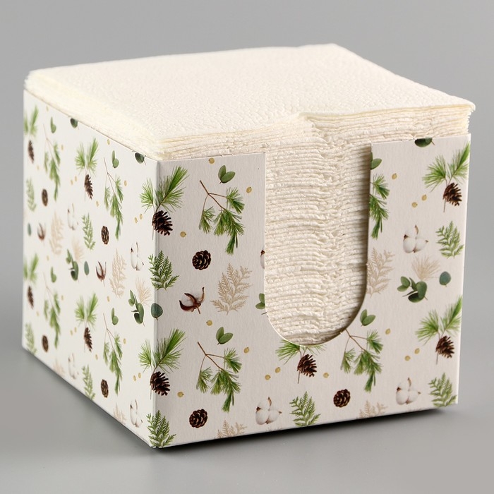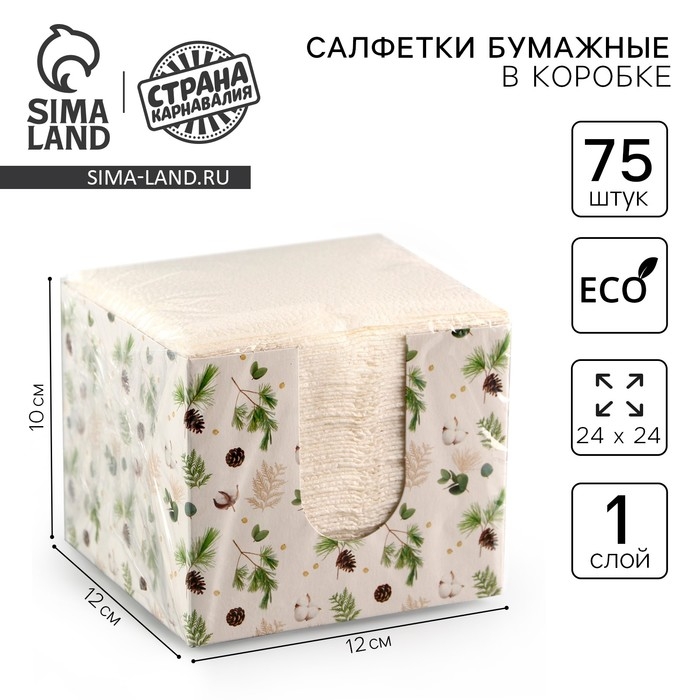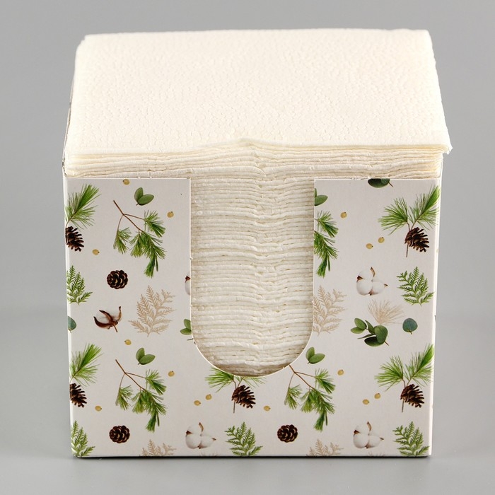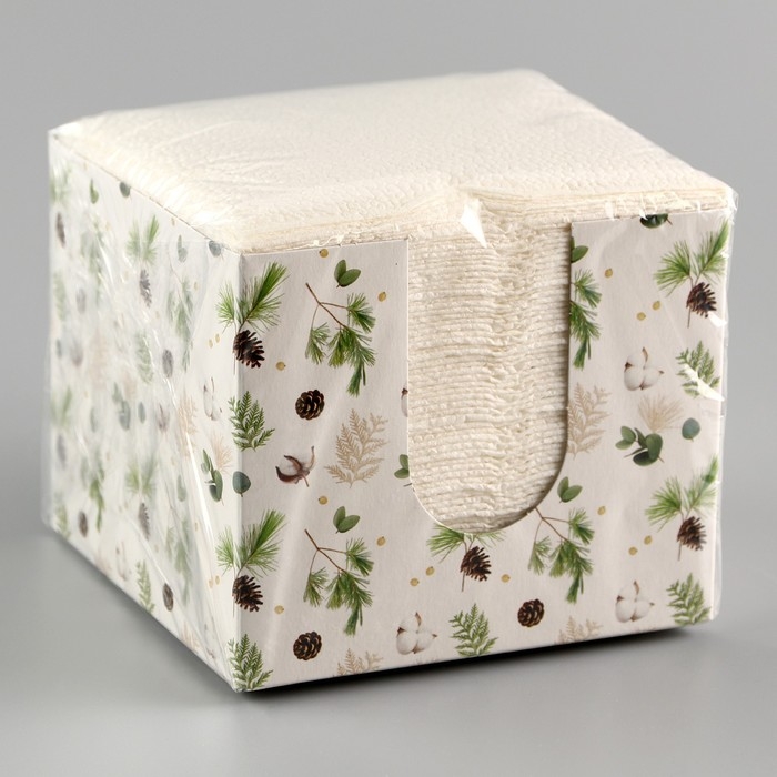 Новогодние салфетки бумажные в коробке «Шишки», интерьерные, 75 листов, на новый год