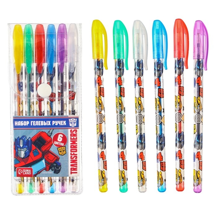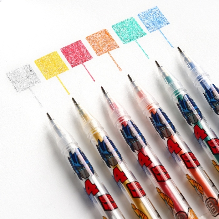 Ручка шариковая с блестками, 6 цветов, Трансформеры