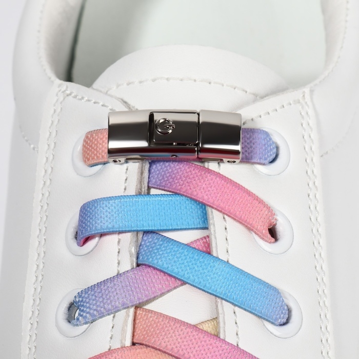 Шнурки для обуви, на магнитах, пара, с плоским сечением и фиксатором, 100 см, цвет белый
