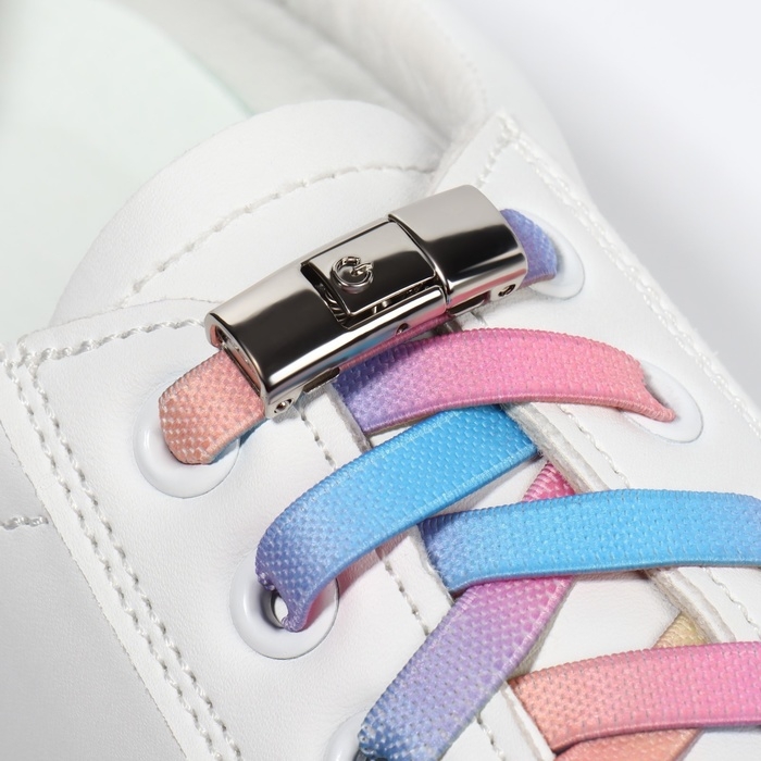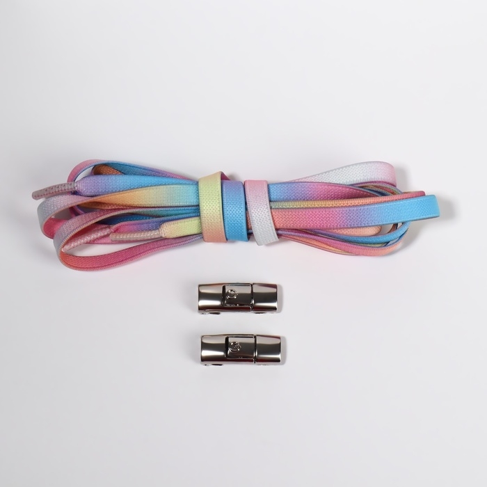 Шнурки для обуви, пара, с плоским сечением и фиксатором на застёжке, 8 мм, 100 см, цвет разноцветный