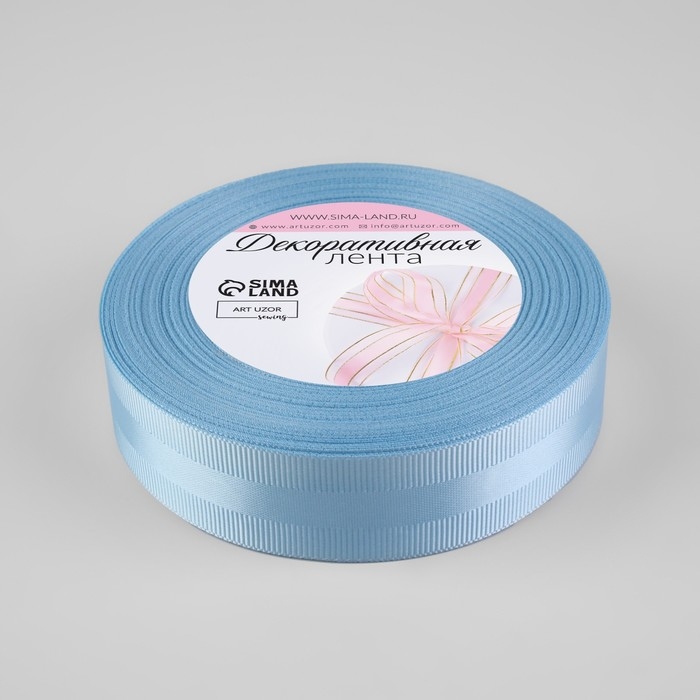 Лента декоративная, репсовая/атласная, 25 мм, 18 ± 1 м, цвет голубой