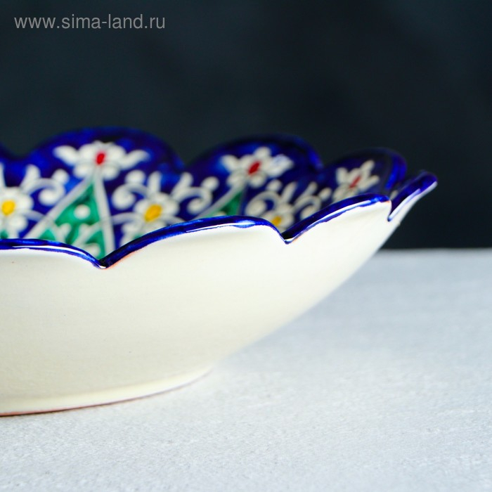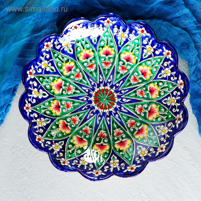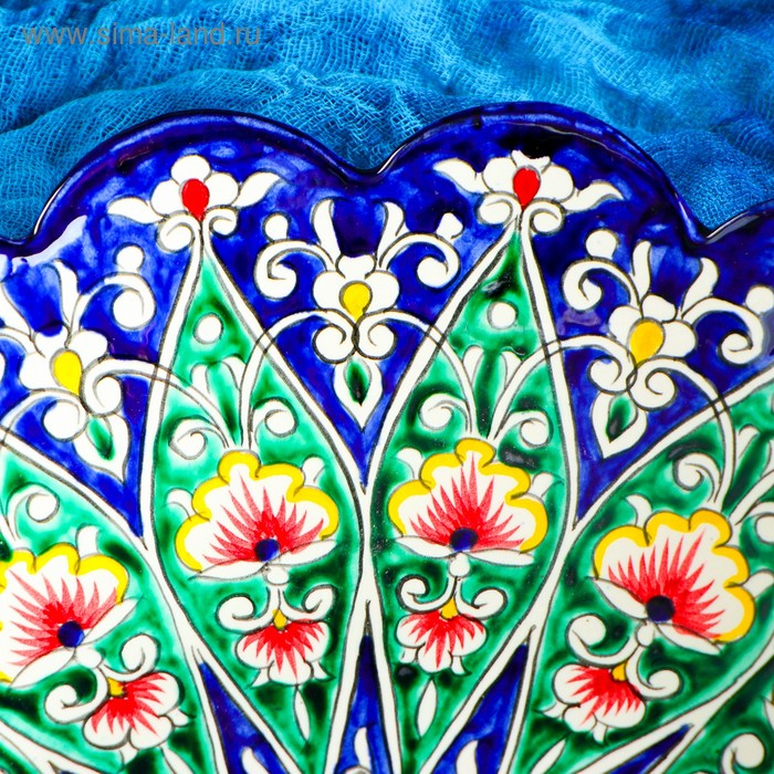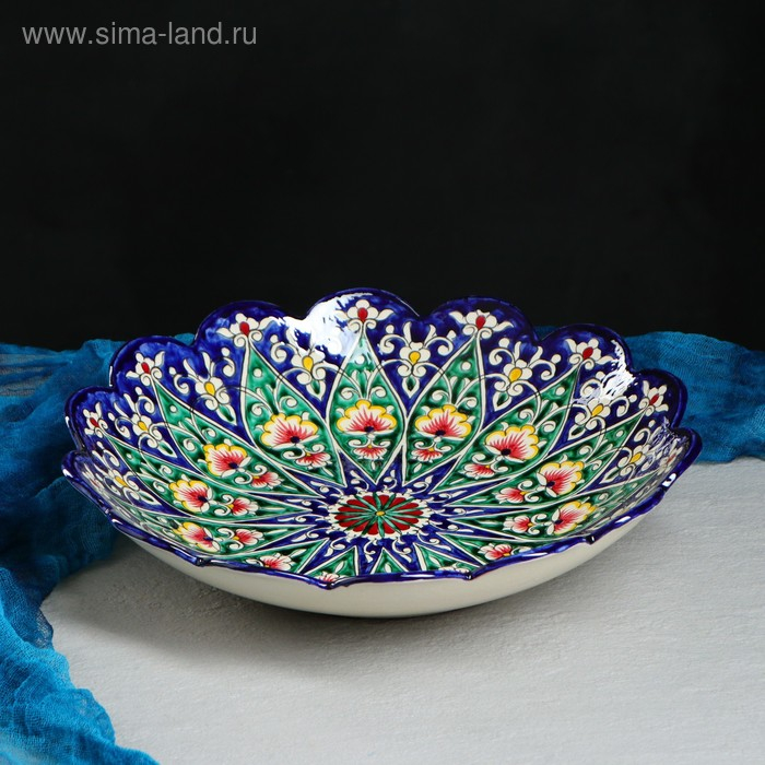 Ляган Риштанская Керамика "Цветы", 33 см, синий, рифлёный