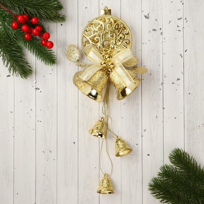 Украшение новогоднее "Уютная сказка" колокольчики снежинка в шаре, 12х27 см, золото