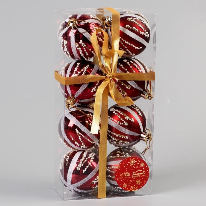 Набор шаров пластик d-5,5 см, 8 шт "Маскарад" бордовый