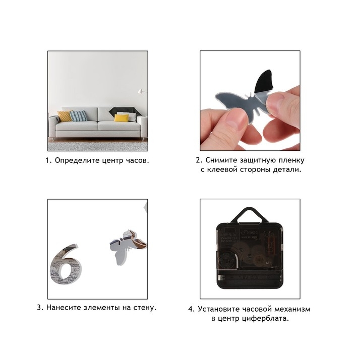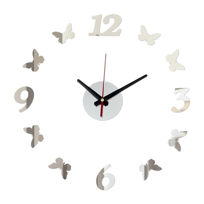 Настенные часы с бабочками дополнят декор и интерьер вашего дома и станут отличным подарком близким людям. Стильные и красивые часы на стену с бесшумным кварцевым механизмом будут украшением любой комнаты: гостиной, спальни, зала или офиса. Они работают на батарейках, имеют регулируемые размеры циферблата и 3д эффект благодаря вспененной основе. Клеящий слой позволяет разместить часы на различные поверхности: любые виды обоев, окрашенные, деревянные, пластиковые, керамические или металлические.