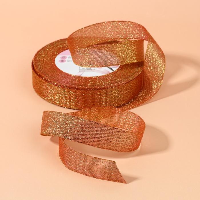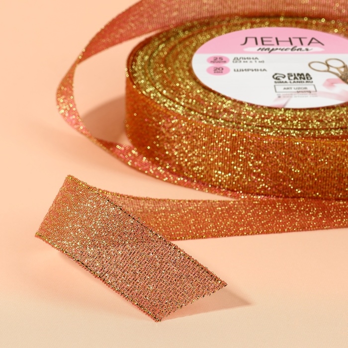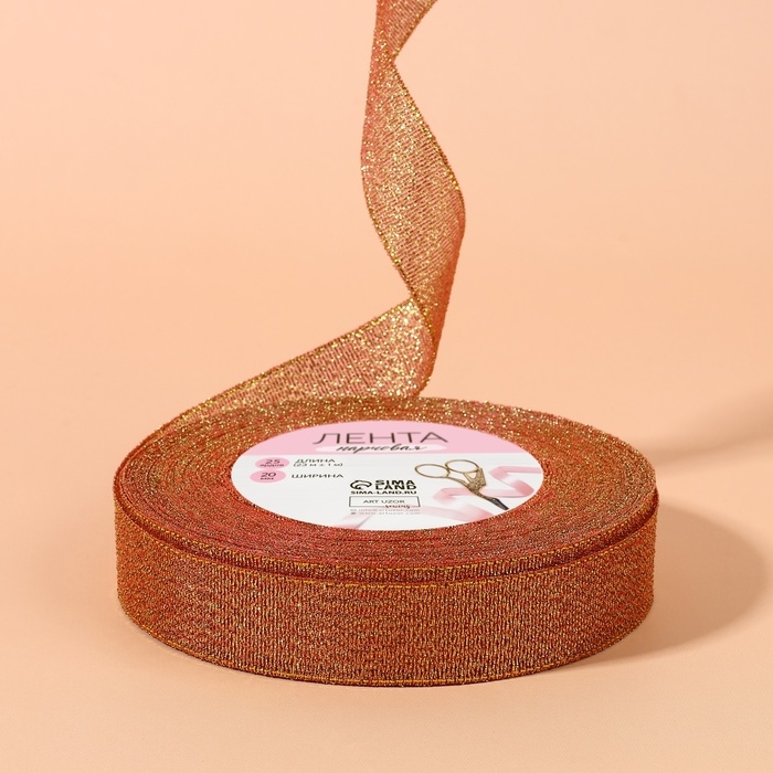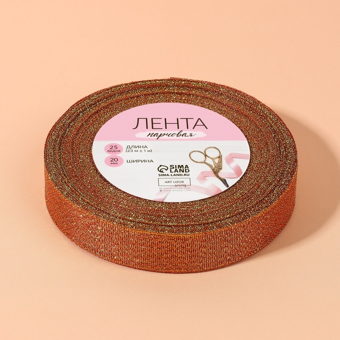 Лента парчовая, 20 мм, 23 ± 1 м, цвет морковный №014